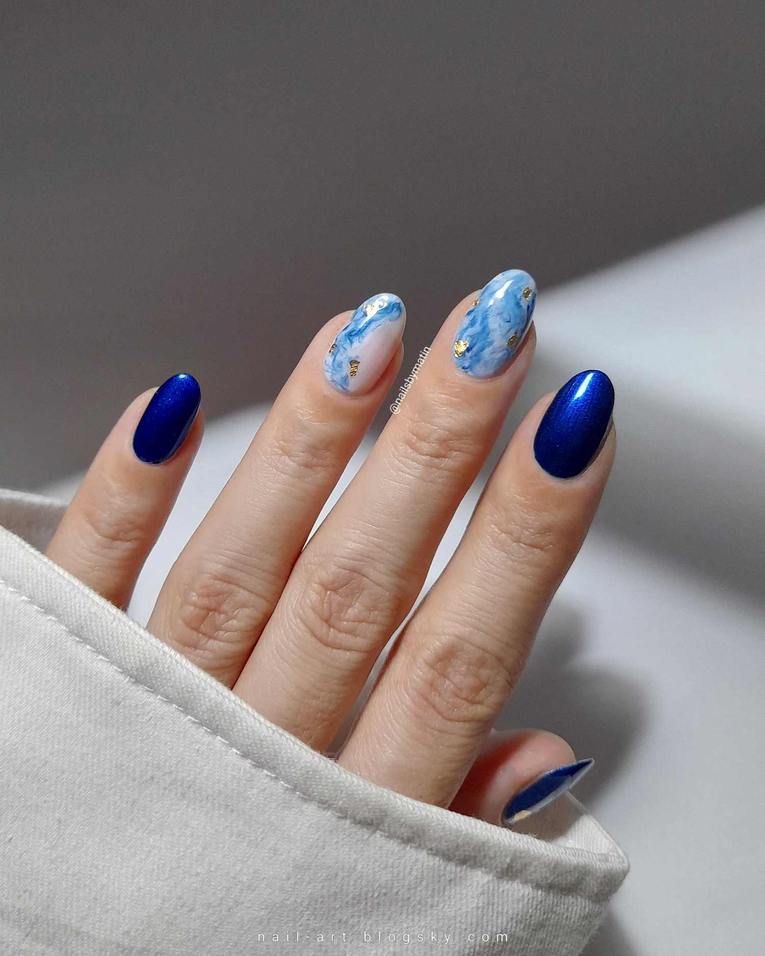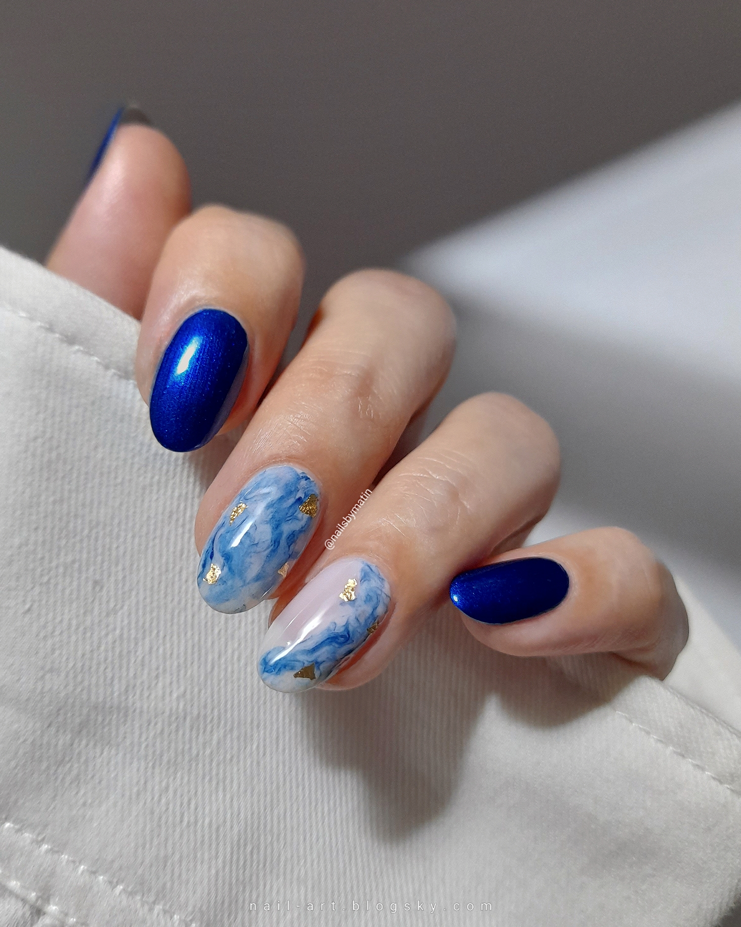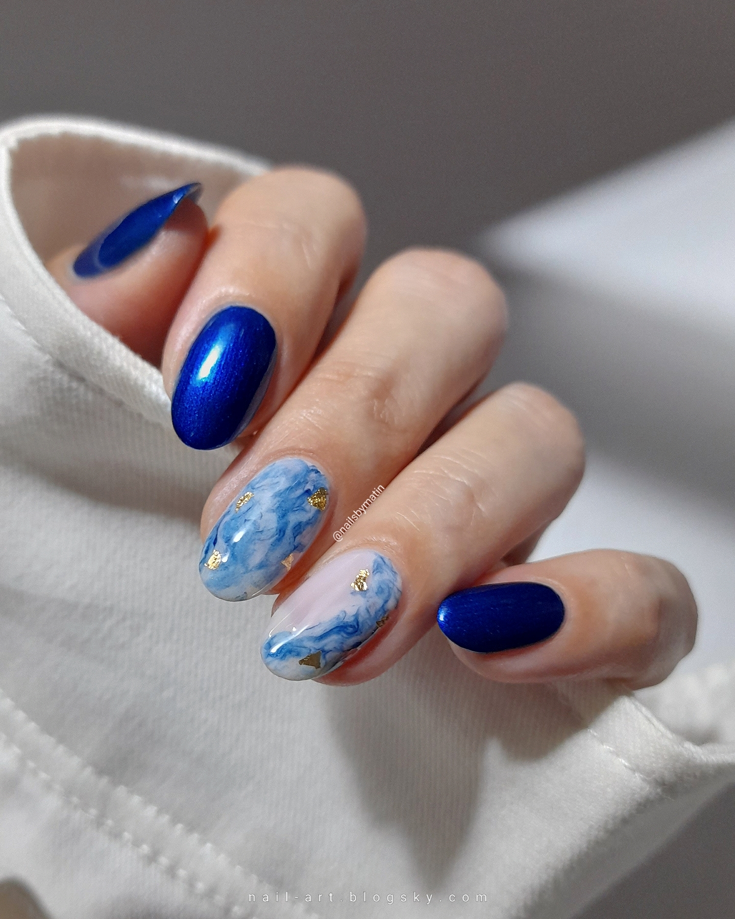 Blue drag marble nails